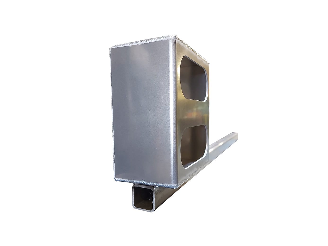 Aluminum Alberta cabguard light box mounts four oval rubber mounted sealed lamps. AL1090 assembly consists of Part No. AL1080 with 1-1/2″ aluminum tubing. Can be used with AL1091 Receiver Tube.