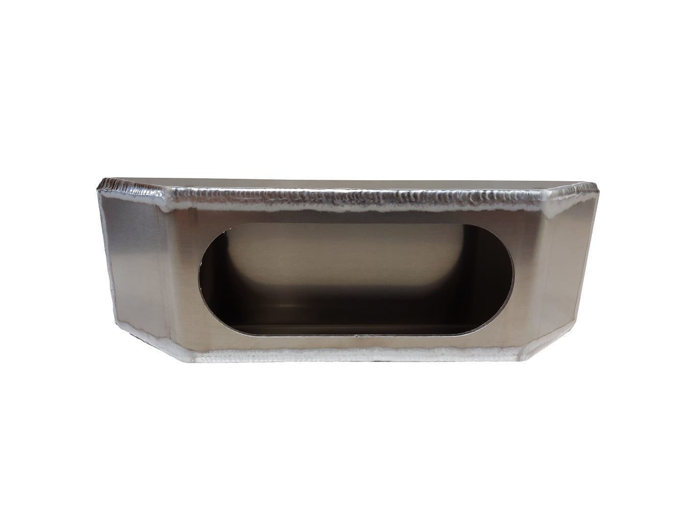 Aluminum single oval sloped end light box mounts oval rubber mounted sealed lamp.