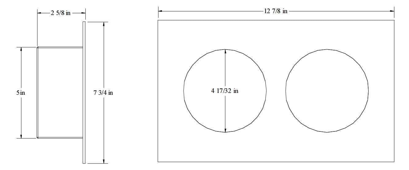 Flanged double tail light box mounts two 4″ rubber mounted sealed lamps.