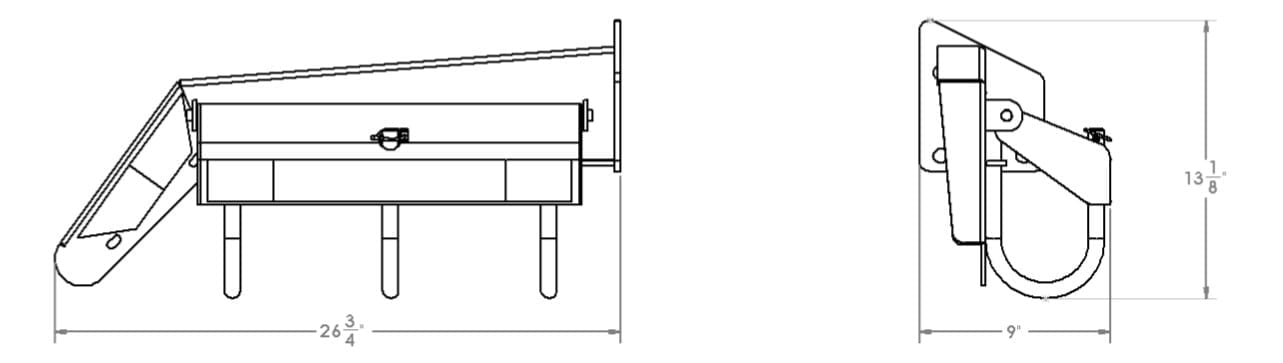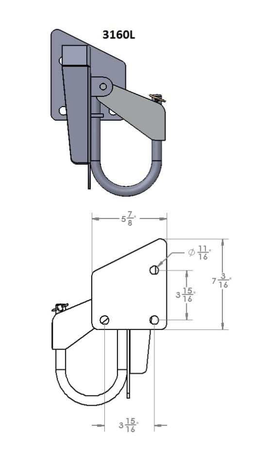 Tire chain hanger / mud flap bracket, LH is an ideal solution where there is limited space on your truck frame. It comes with a mud flap retainer bracket and has three 5/8″ mounting holes in the base. A smooth aluminum cover with conspicuity tape can be pinned down to secure your tire chains. The steel body of this chain hanger / mud flap bracket is powder coated gloss black for a shiny durable finish. Designed for mounting behind the rear axle, left hand. Originally designed for PACCAR.