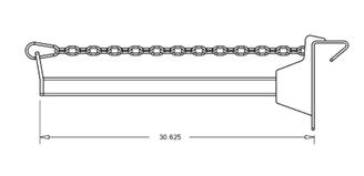 Tire chain hanger with clip-on mounting base uses 2″ x 2″ tubing to hold tire chains. The clip-on mounting base hooks over the flange of your truck frame for easy mounting. Tire chains can be easily secured with a chain and snap hook. Powder coated gloss black.