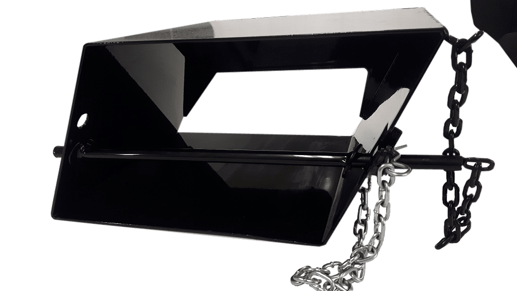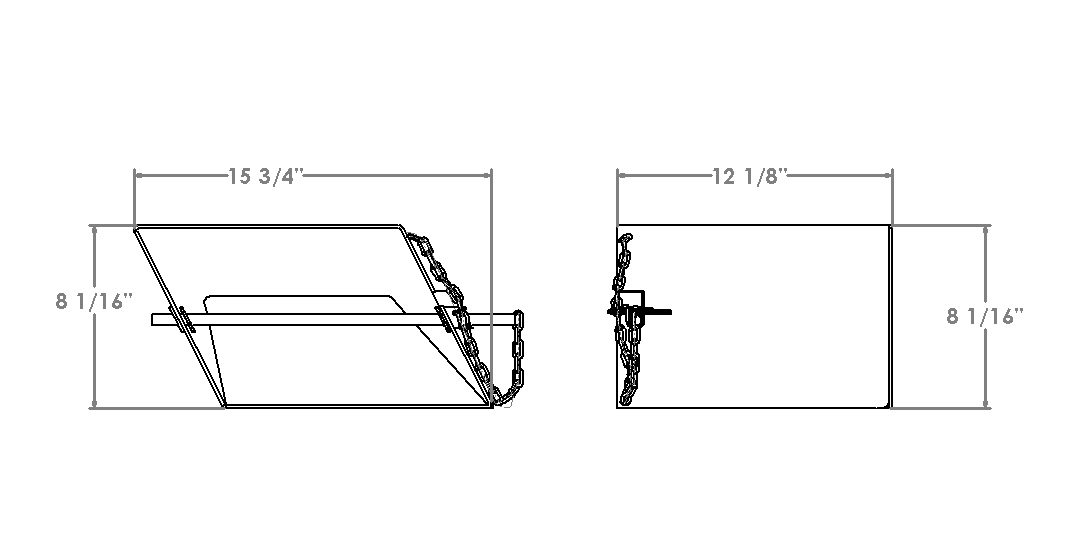 Wheel chock holder mounts to frame or underbody of truck and accommodates (2) 10″ x 8″ x 6″ standard wheel chocks. Wheel chocks are secured by clip and pin. The back of the wheel chock box is partially open, allowing dirt to be pushed out, rather than accumulating in the box. Powder coated with a durable gloss black finish.